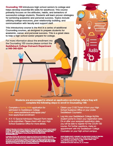 Seniors can earn Saddleback credit and SCHS credit!Saddleback College Counseling 100 ![]()
